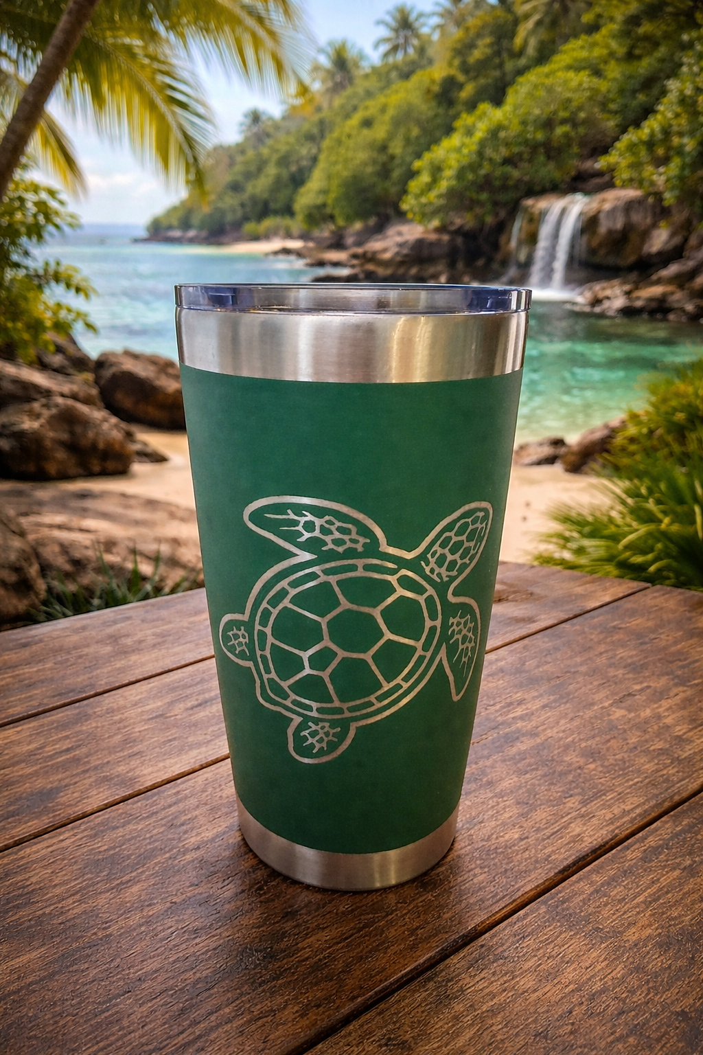 Bring island vibes wherever you go with this 20 oz Stainless Steel Sea Turtle Tumbler. Featuring a serene matte green finish and a beautifully detailed sea turtle design, this tumbler is the perfect blend of coastal charm and everyday functionality.